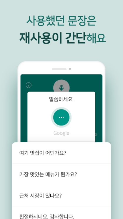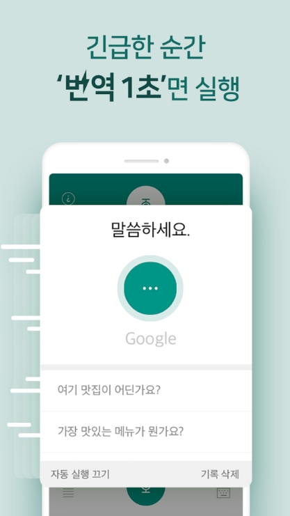 앱을 실행하자마자 나타나는 음성 검색은, 데이터가 잘 터지지 않는 상황, 번역이 바로 필요한 상황에서 아주 유용합니다. 음성인식 검색 기록으로, 사용했던 문장은 0.1초 만에 사용할 수 있습니다.