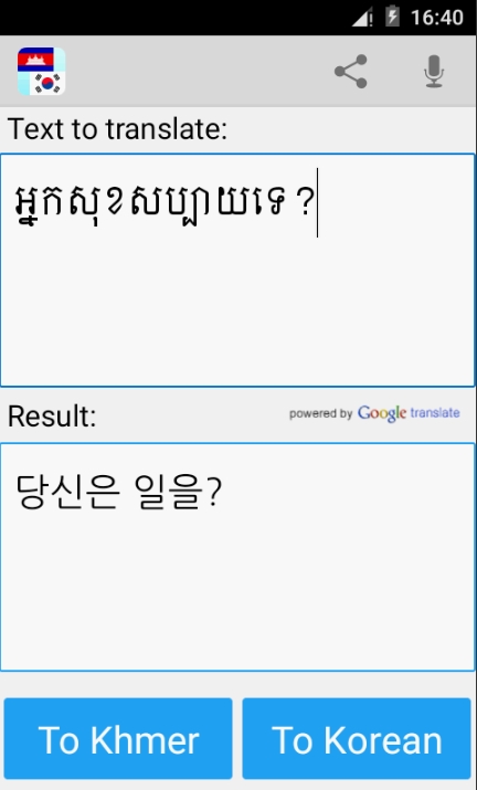 ▶ 크메르어로 번역할 때 음성지원이 된다면 더 편리하겠어요. 그러나 만족해요