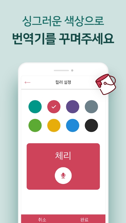 번역기도 예뻐야 합니다. 사용자의 취향을 저격하는 8가지 테마!! 싱그러운 자연에서 영감을 얻은 컬러테마 (체리, 수박, 포도, 흑임자 등…)를 골라서 사용하세요.